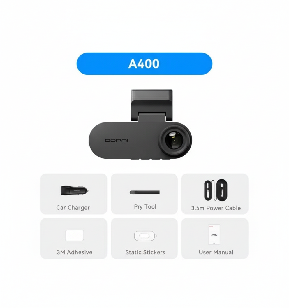 كاميرا DDPAI A400 هي كاميرا قيادة متطورة بدقة 4K صُممت لتوفر تجربة تصوير فائق الجودة مع مزايا أمان ذكية تشمل نظام ADAS وتقنية NightVIS 2.0 للرؤية الليلية. تدعم المراقبة على مدار 24 ساعة عند توقف السيارة، مما يجعلها خيارًا مثاليًا للسائقين الذين يبحثون عن وضوح عالي، وحماية ذكية، وسهولة تحكم عبر التطبيق.