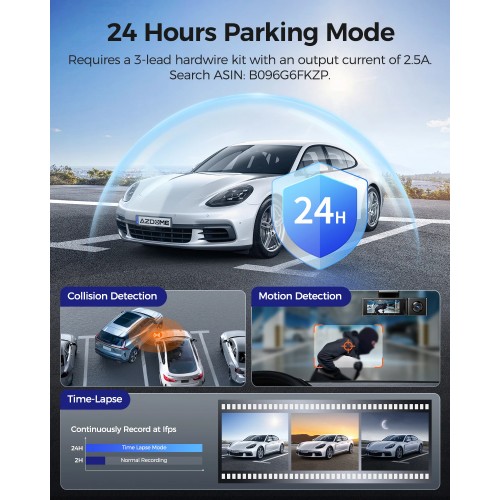 تتيح الكاميرا مراقبة السيارة أثناء التوقف عبر أوضاع الحركة أو الصدمات، حيث تبدأ التسجيل تلقائيًا عند حدوث أي حركة أو اصطدام.
